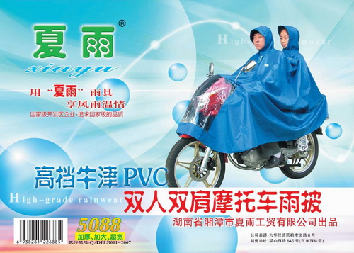 pvc真絲彩雙人(rén)雙肩摩托車(chē)雨披