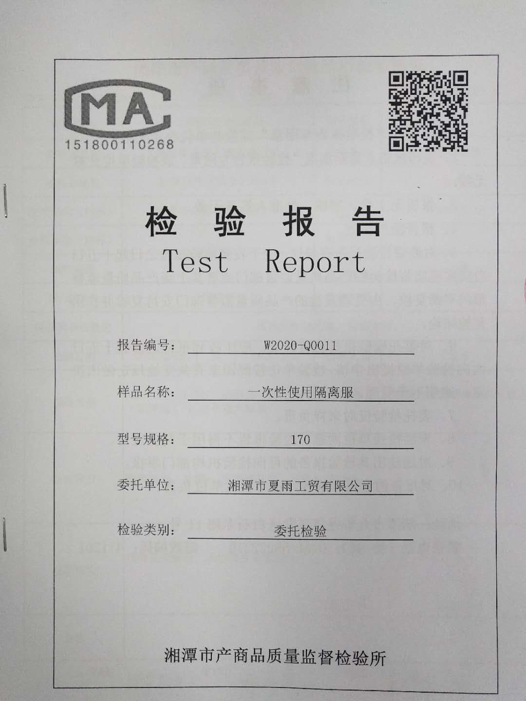 一次性使用隔離服檢測報告